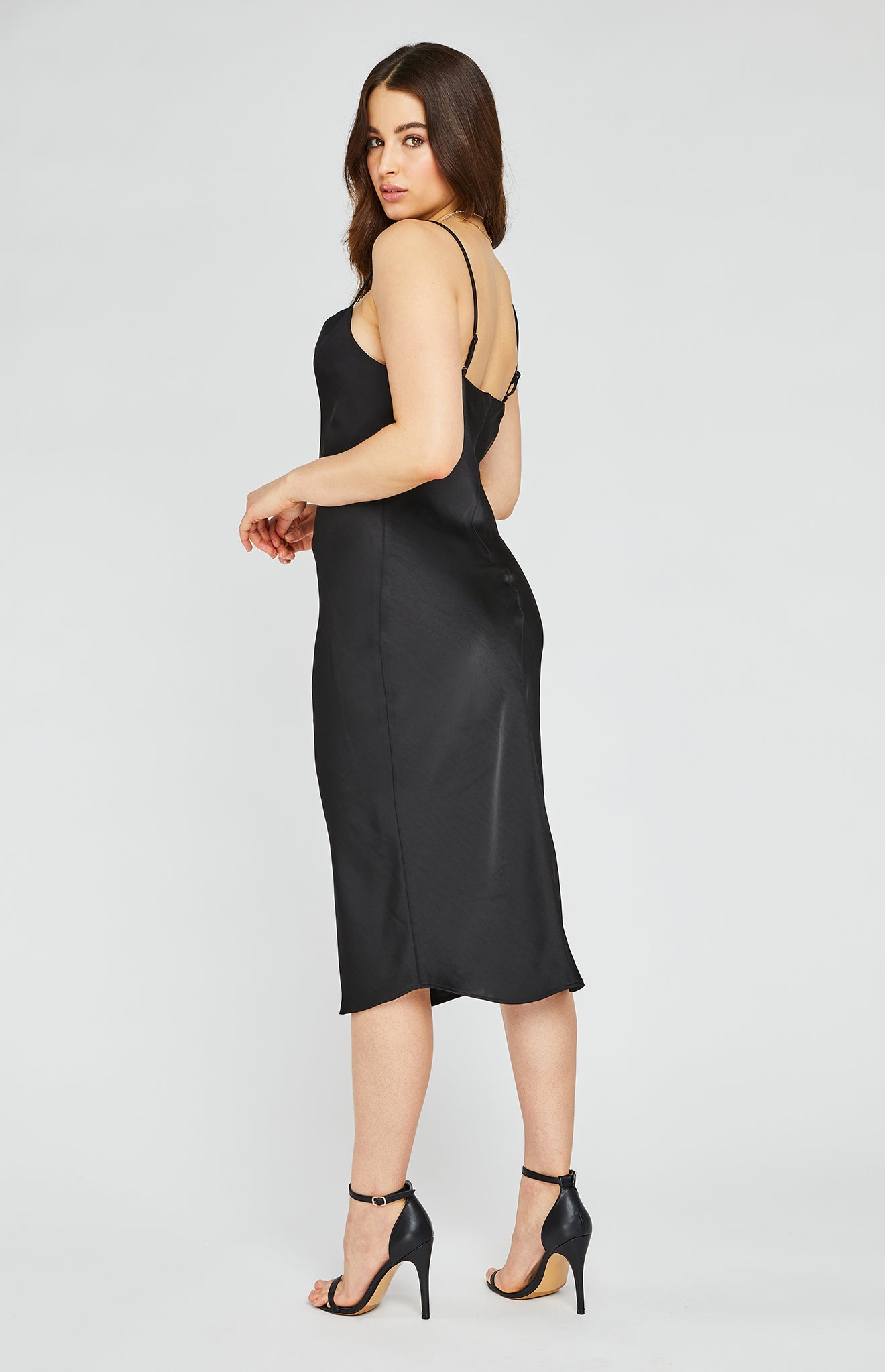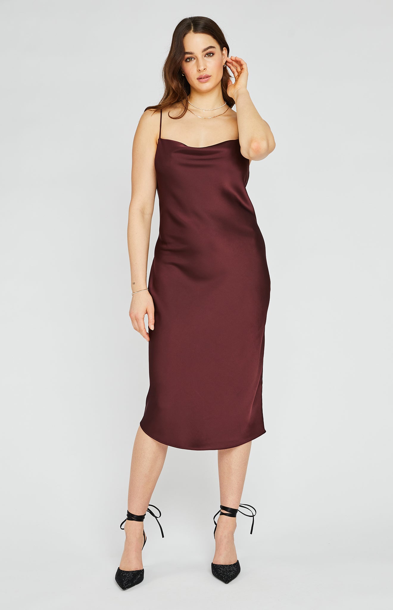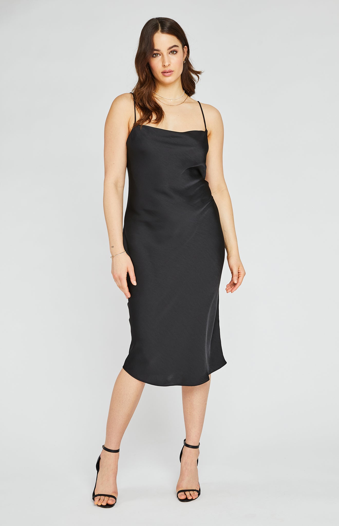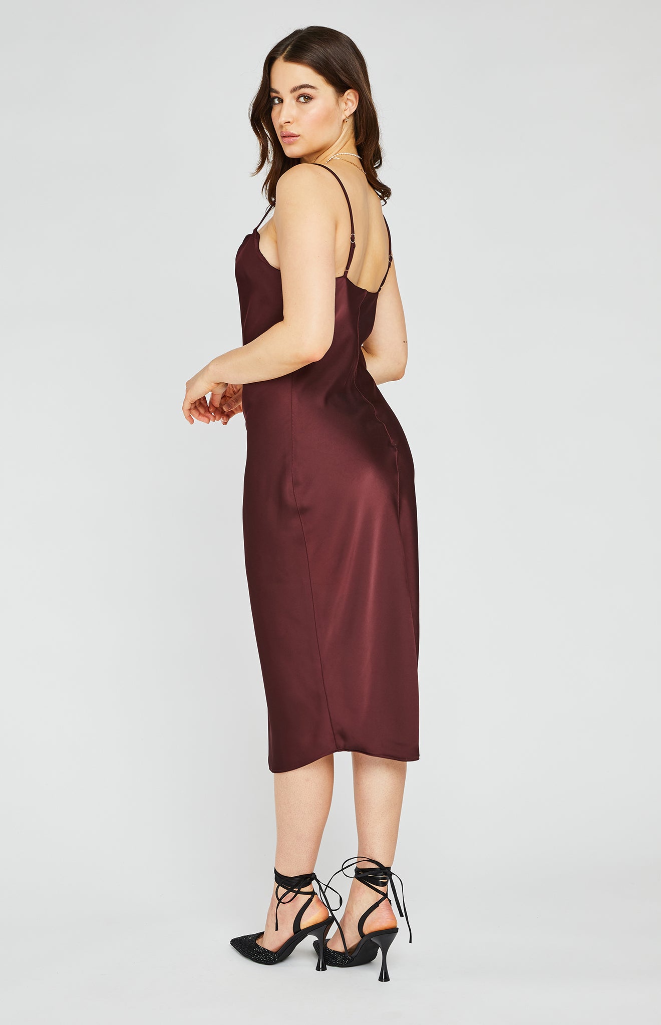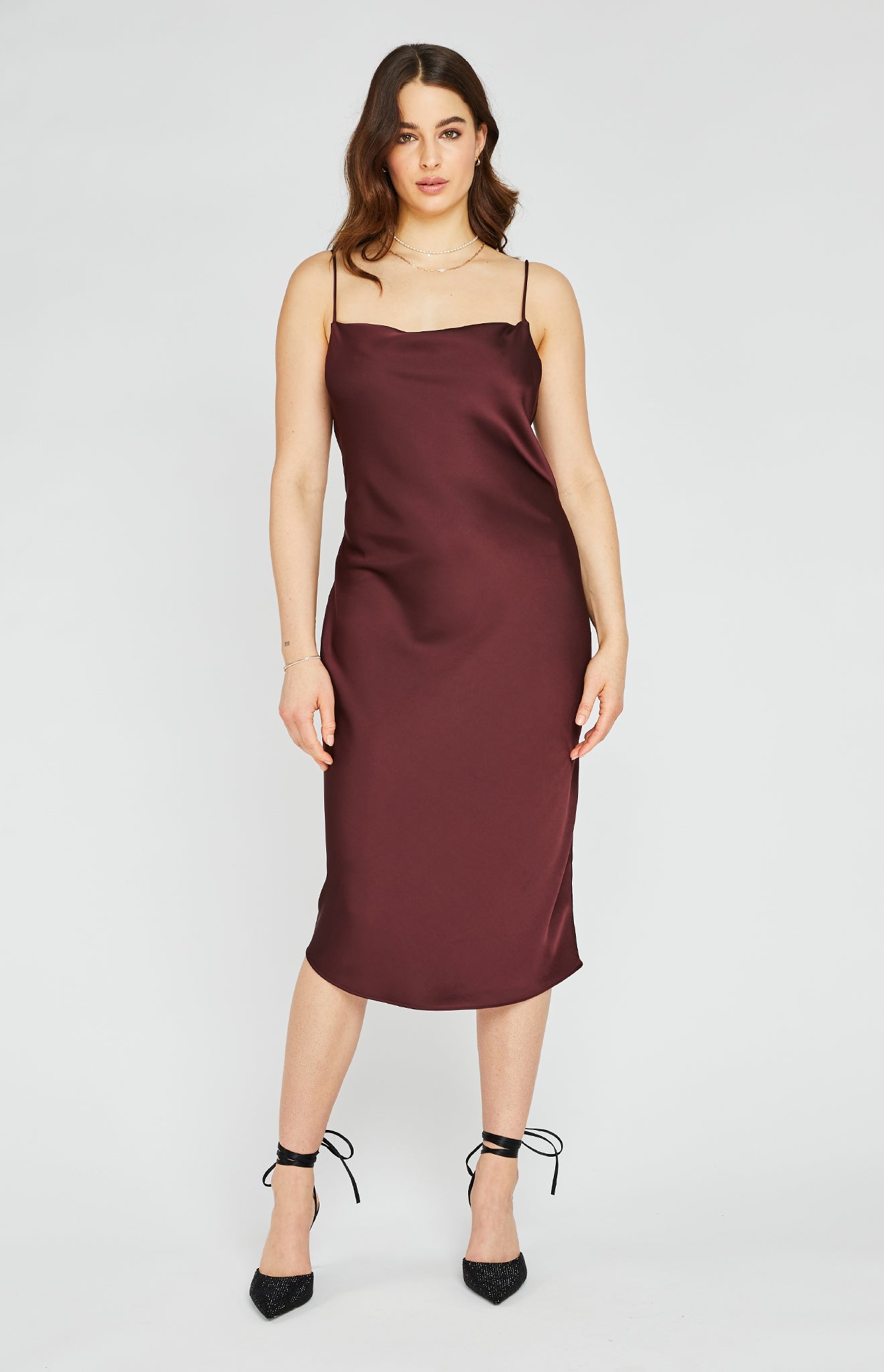 The Agatha dress is a cowl-neck satin dream! Featuring a bias cut fabric for an elegant drape and adjustable straps for the perfect fit, you'll be looking - and feeling - your absolute best!