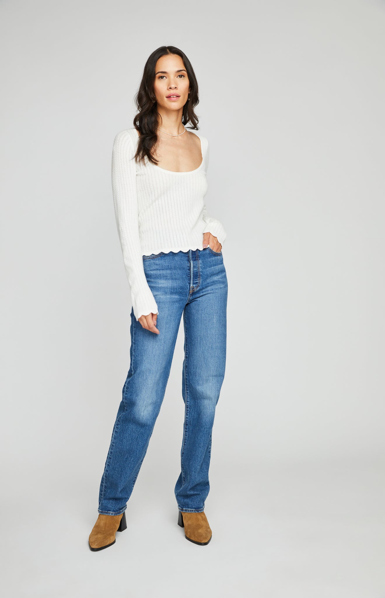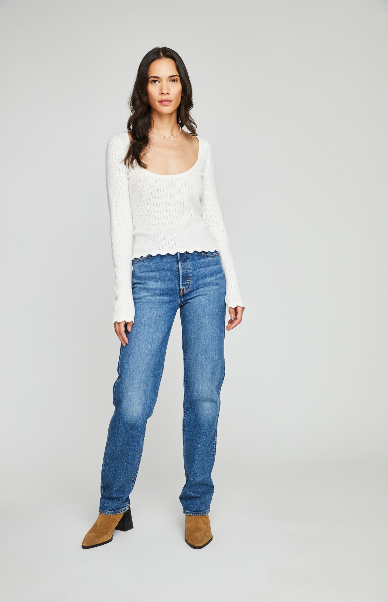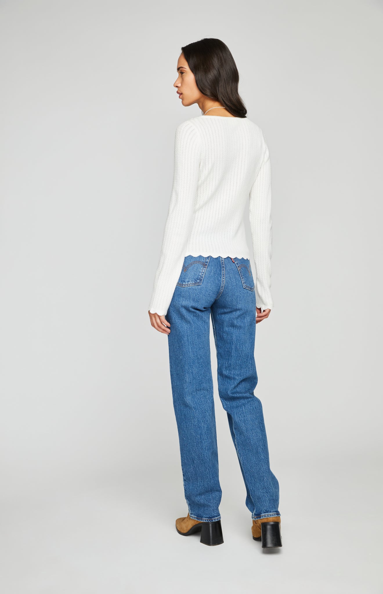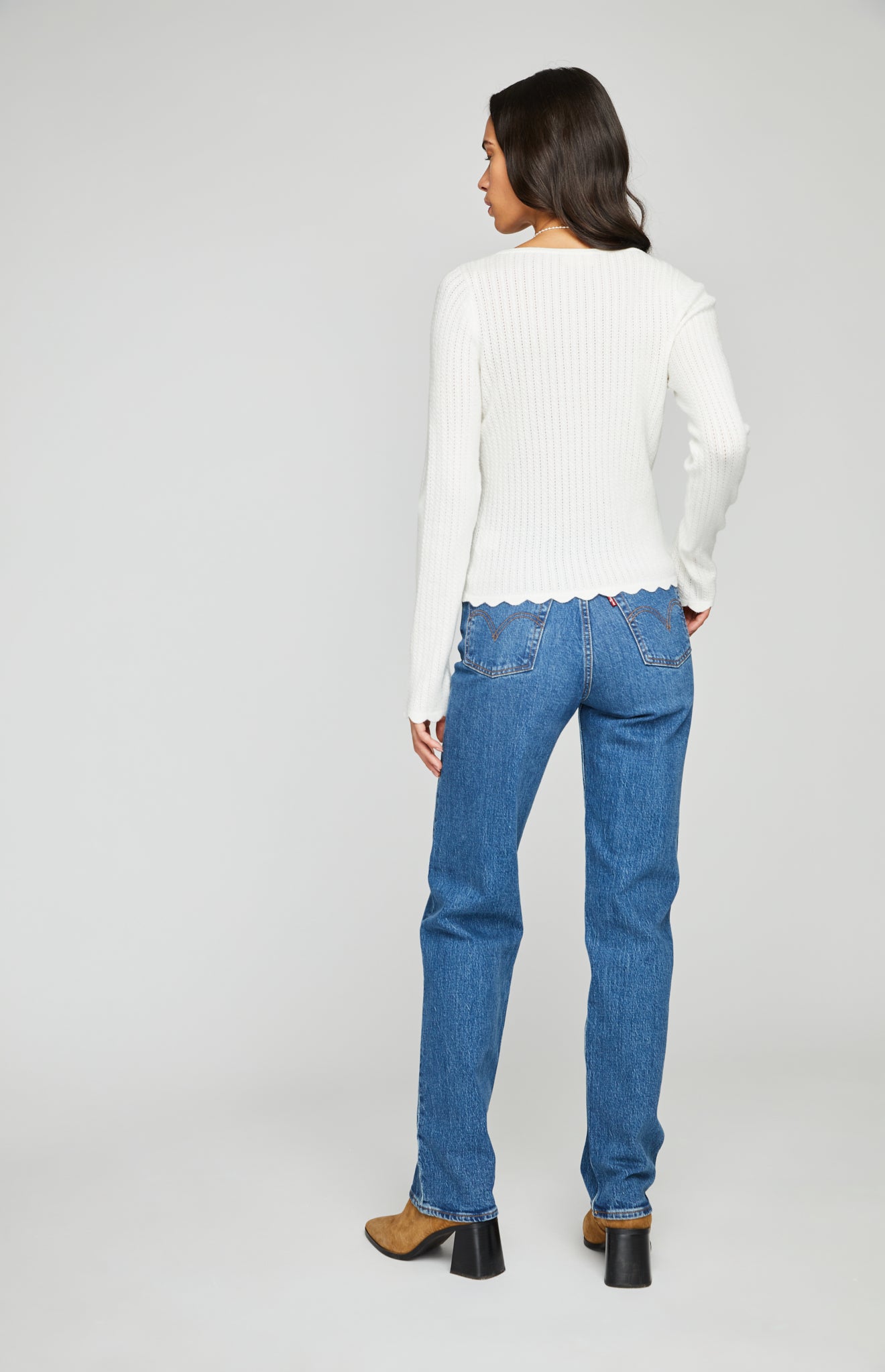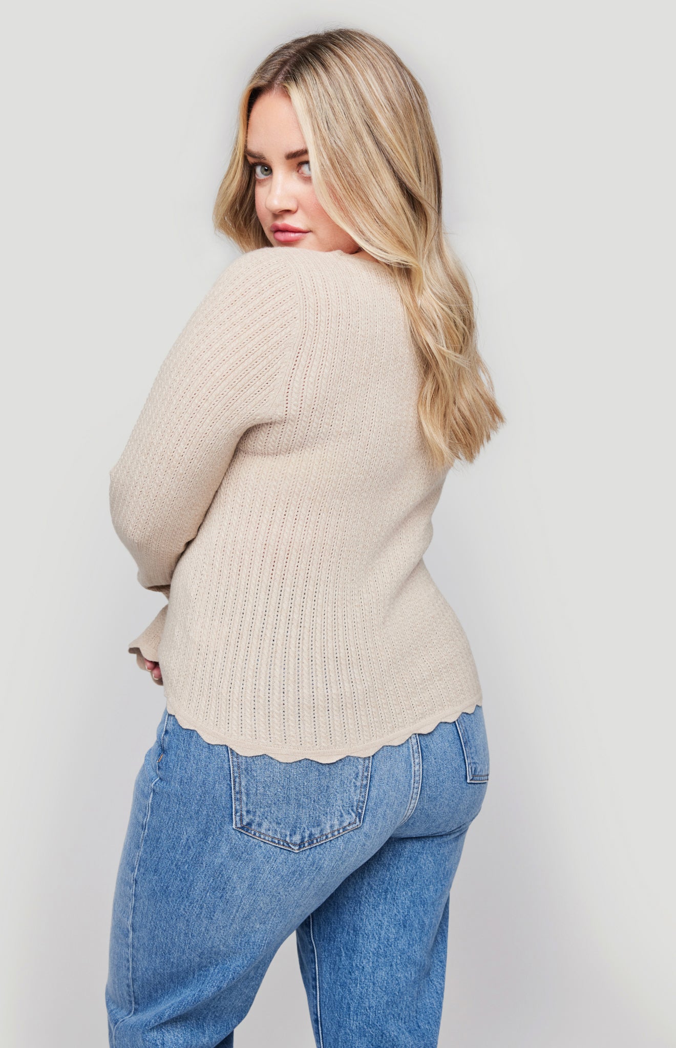 Wrap yourself in comfort and style with the Annie Pullover. Made of soft yarn with a unique stitch pattern, this sweater features a flattering neckline and delicate scallop details. Stay cozy and chic all day long.