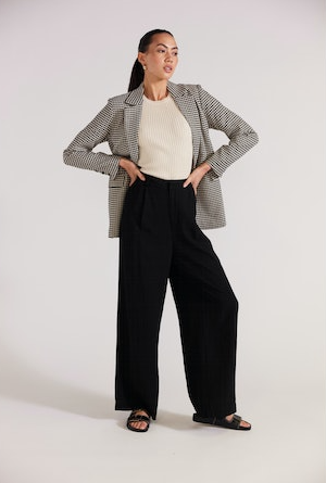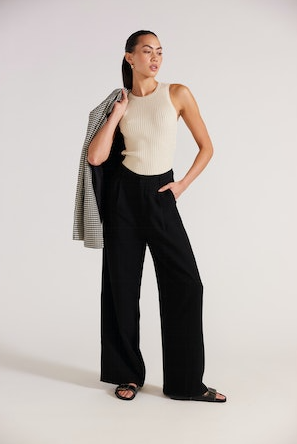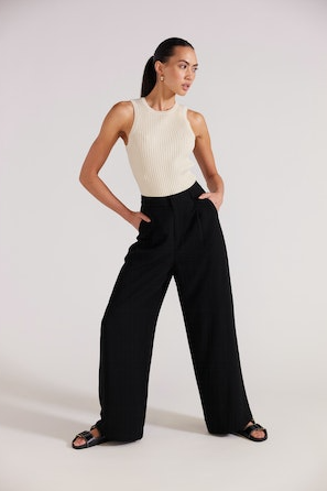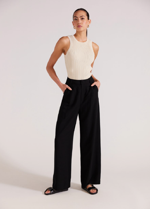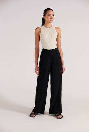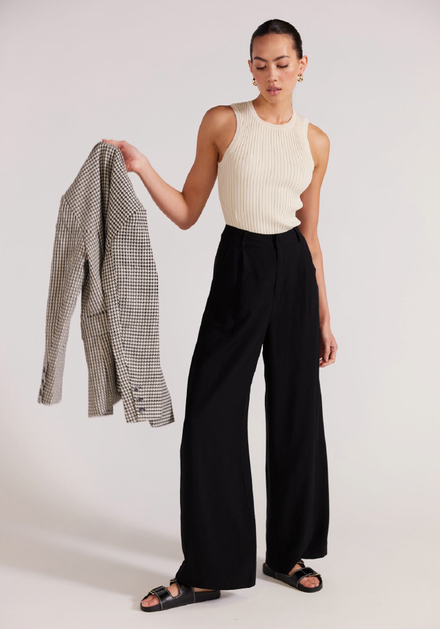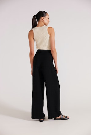 Crafted from a luxurious blend of linen and black fabric, the Aster Wide Leg Pants exude timeless elegance. Its signature wide-leg design is complemented by functional side pockets and a flattering high-waisted fit.