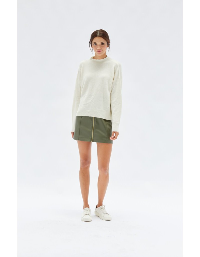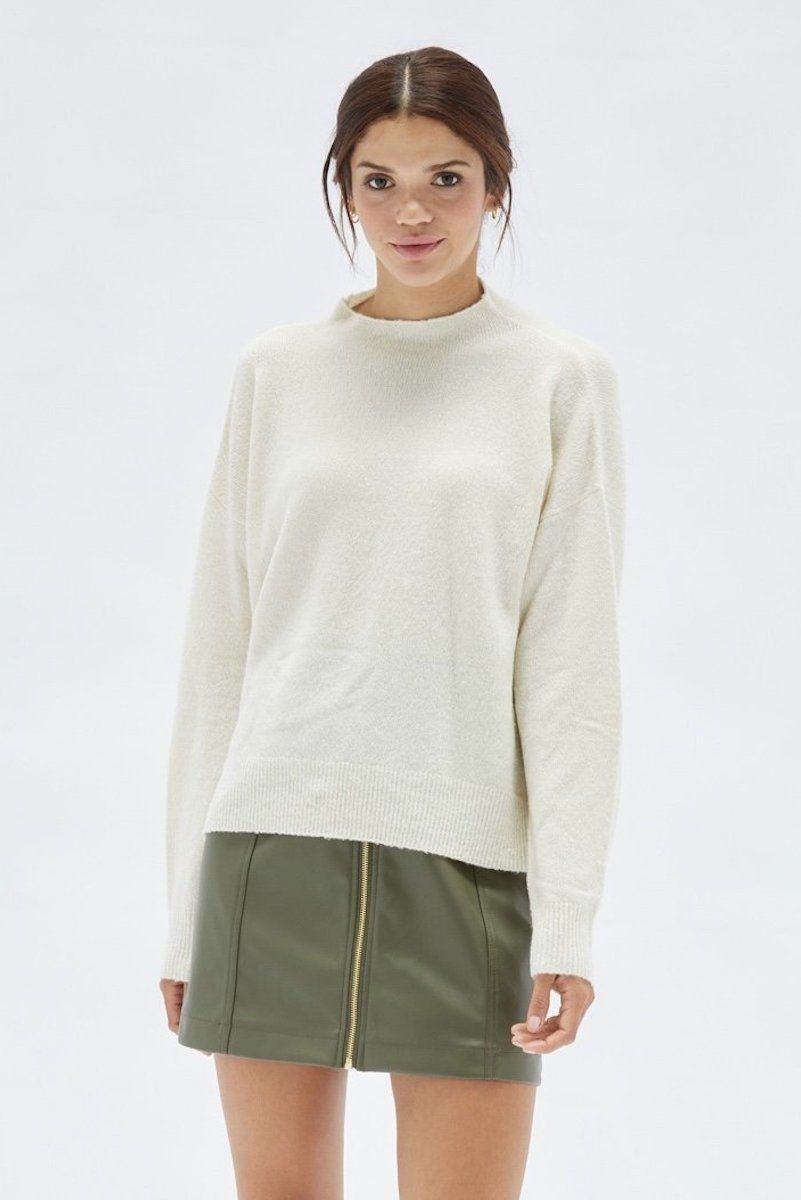 The Atar Funnel Neck Sweater is a lightweight, ultra-soft sweater in a stunning winter white. It features a mock neck detail and fitting silhouette, making it a cozy fall staple for any and every wardrobe!