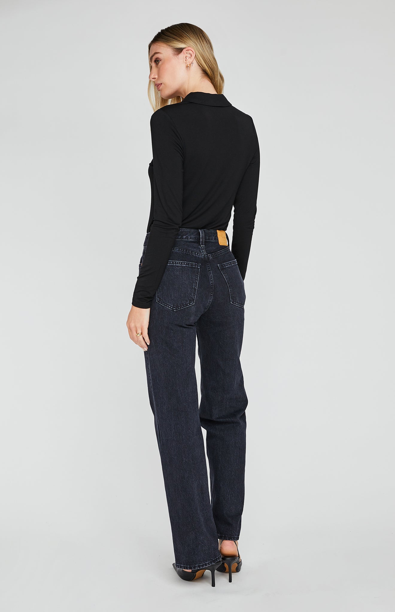The Cannon top is made of super soft EcoVero rayon jersey. Features include a collar and functional button placket.