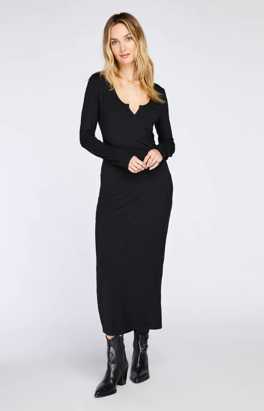 The Courtney dress is made of super soft EcoVero rayon jersey and is fully lined for ease of wear. Features include a flattering neckline with notch detail and a midi-length that can be easily dressed up or down.