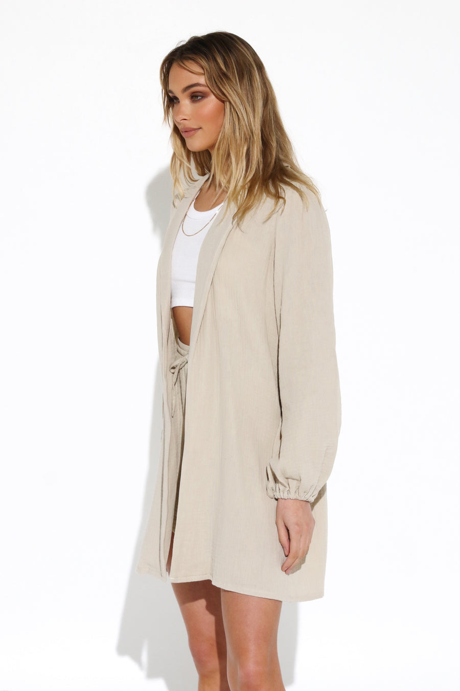 Introducing the Geneva Kimono, the perfect beach cover-up. This style features long sleeves, a relaxed fit, and matching tie belt.