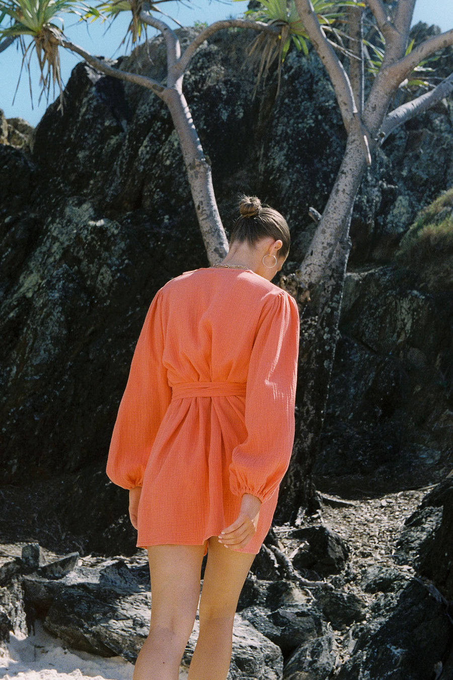 Introducing the Geneva Kimono, the perfect beach cover-up. This style features long sleeves, a relaxed fit, and matching tie belt.