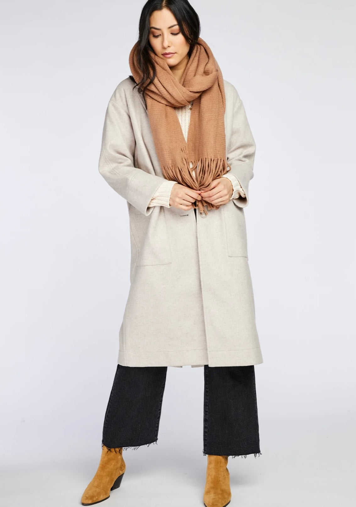 The Journey scarf is made of a super soft yarn with fringe along the hem. This cold weather essential will keep you warm and cozy all season long.