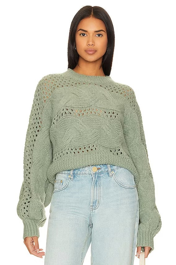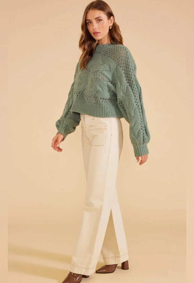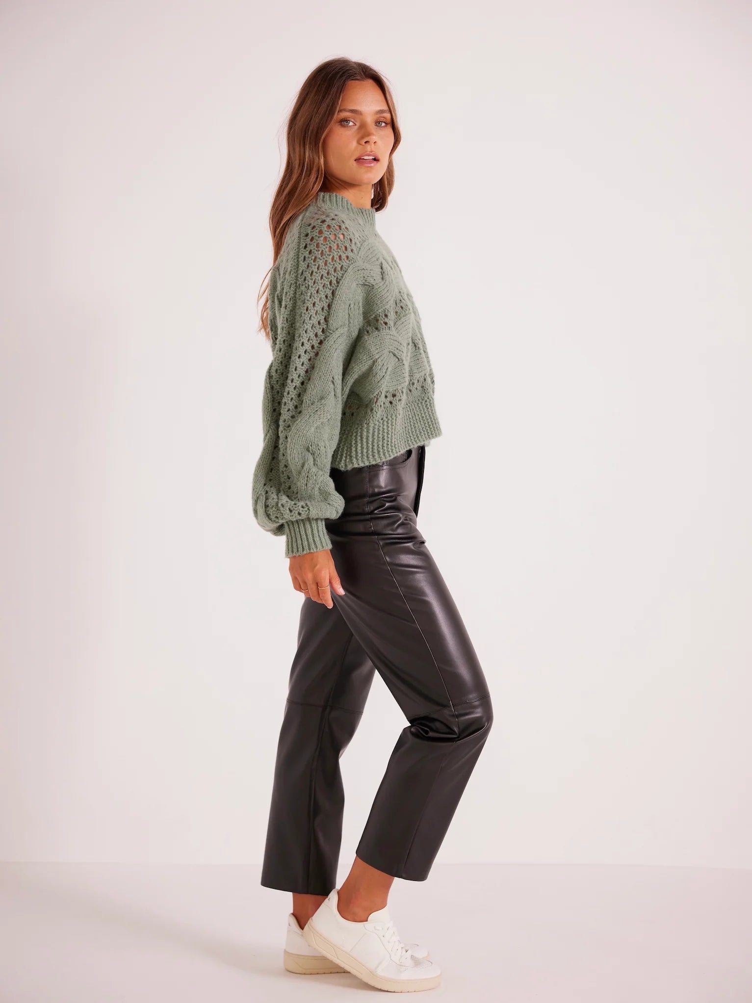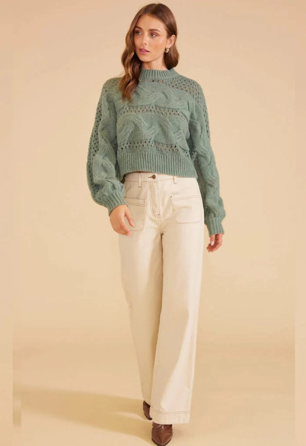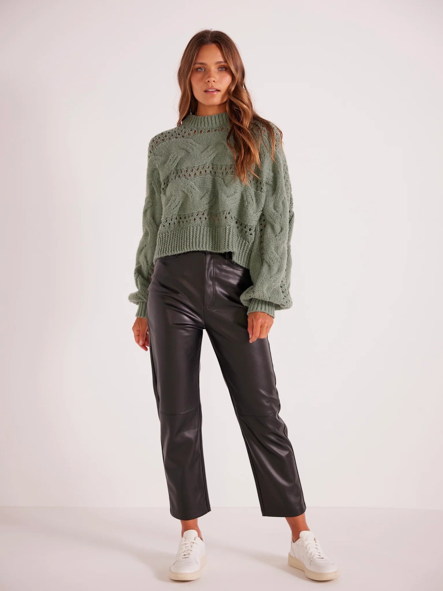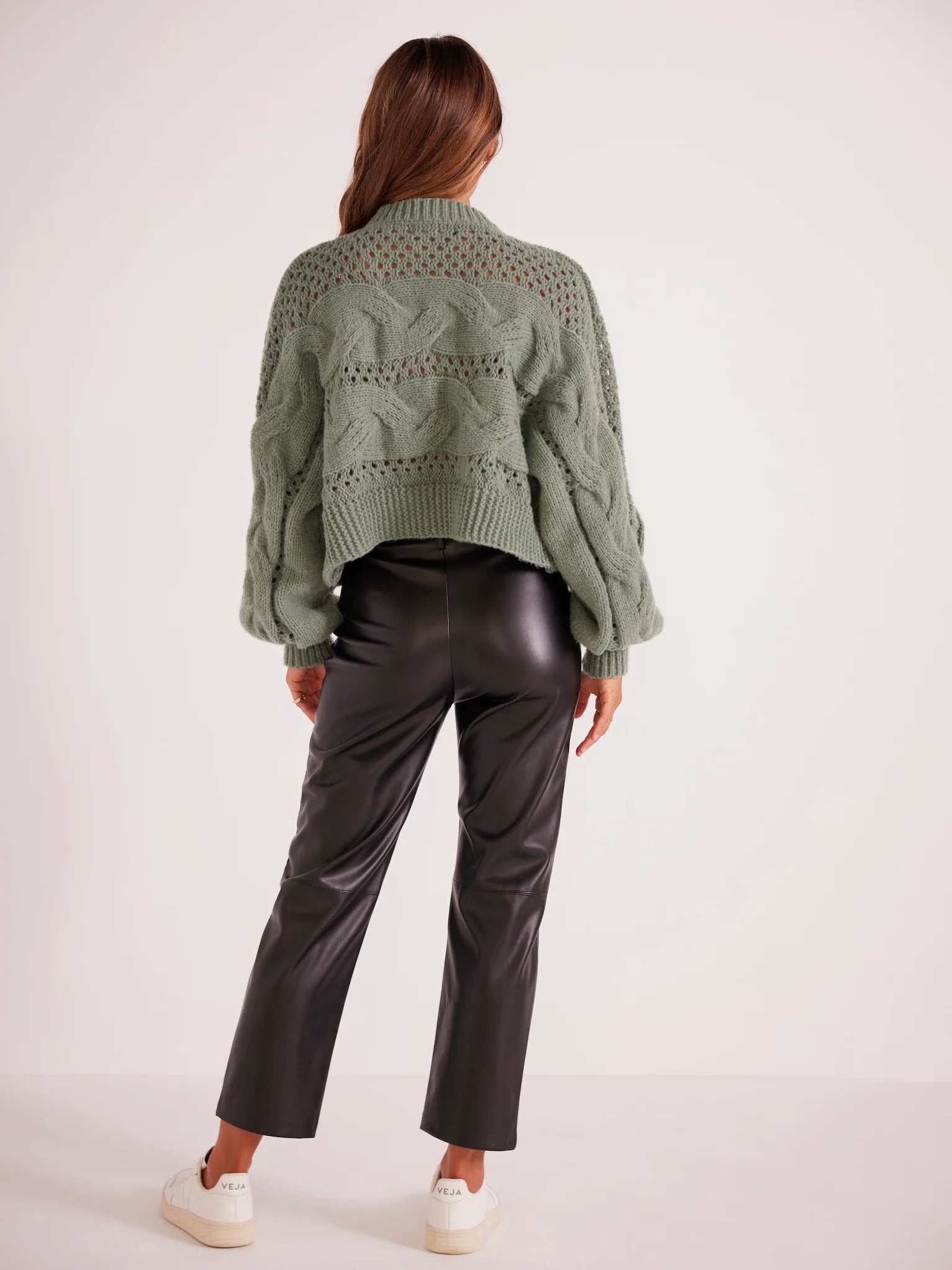 Whether you're feeling a sleek leather skirt or chic trousers, this minty fresh cable knit is ready to rock any look.