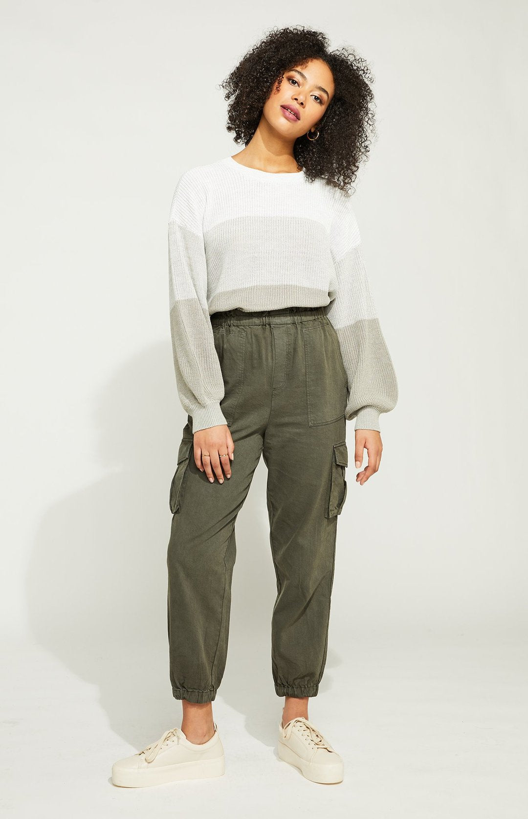The Lawson pant is a utility-inspired cargo pant with a high-rise fit and elasticated waist. The unique colour is achieved through garment dyeing, which gives it a soft, lived in look and feel. With an elasticated cuff, they can easily be styled with a sneaker or bootie for a variety of looks.