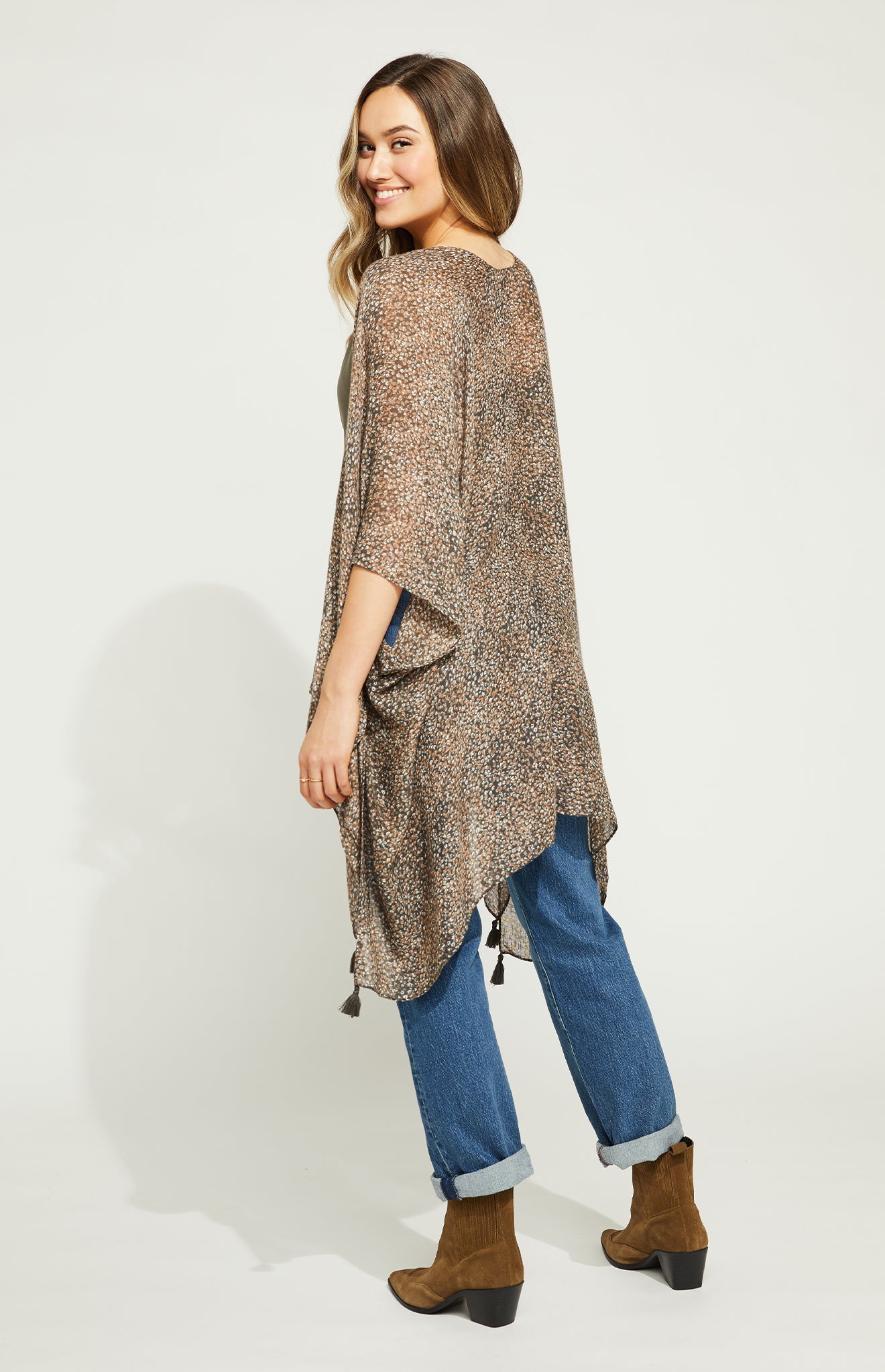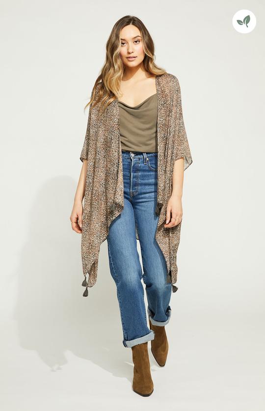 The Ledger is made of EcoVero viscose and features tassel detailing, and a micro ditsy print designed in house. Wear it as a lightweight layering piece all season long.