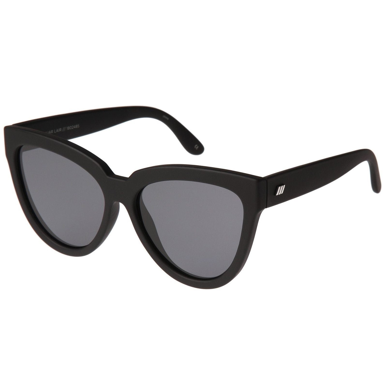 Sharp and sexy, this thick-framed oversize cats eye style offers an everyday look for all face shapes. Finished with a modern flat profile and iconic Le Specs flagstripe metal hardware. Polarized lenses are fitted to eliminate unwanted reflective glare.