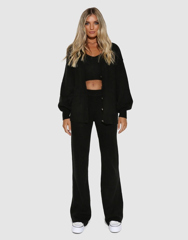 Introducing the soft and comfy Lillian Cardigan. This style features long, balloon sleeves, self-covered buttons, and is made from a super-soft knit fabrication. Pair with the matching Lillian Pants.