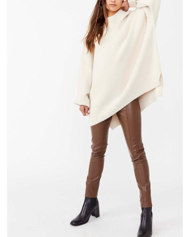 Free People “Peaches Tunic” Gorgeous bestseller oversize mid-heavy knit long sweater in ivory!