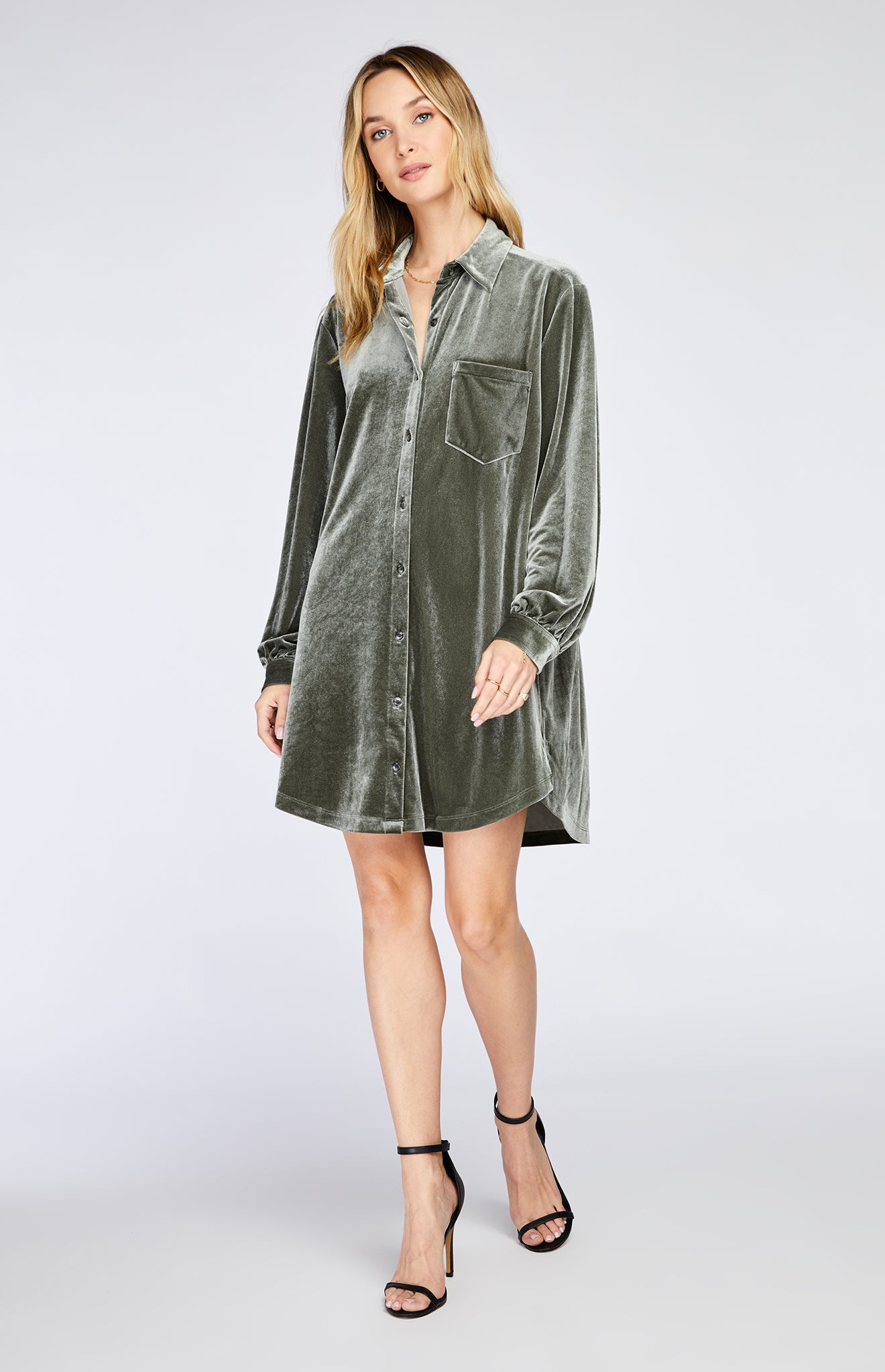 The Shaina Dress takes the classic shirt dress silhouette to a luxurious, silky level, perfect for swishing and swaying as you strut your stuff. This little number's got an always-flattering shape, features side slits, patch pocket, and a hint of smocking along the back yoke - everything you need for fancy evenings out.