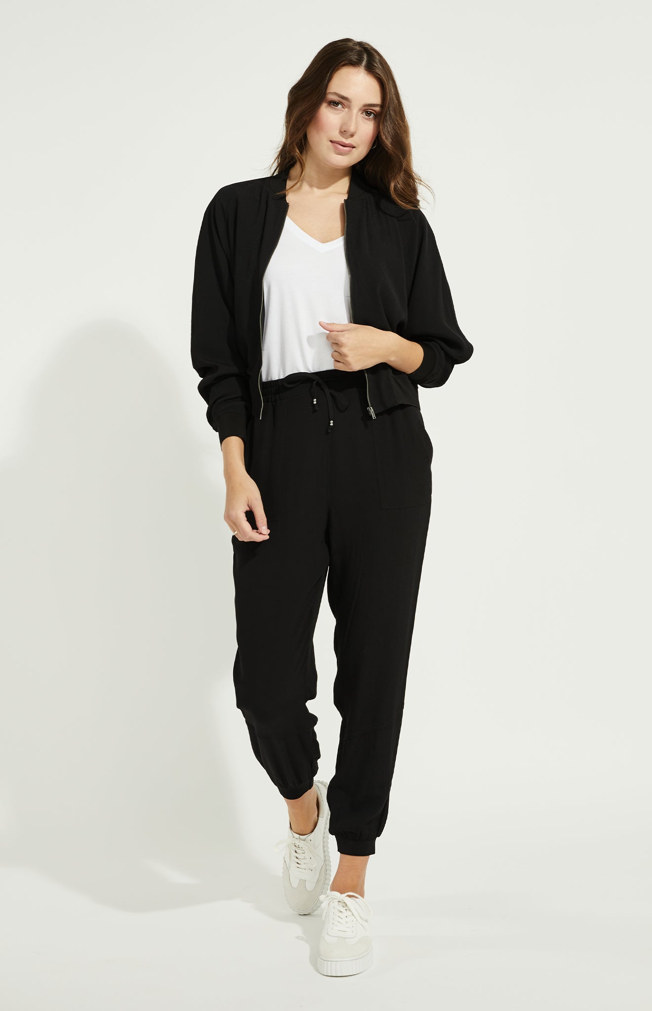 The Storm pant is a high-waisted pull-on pant with an elastic waist and drawstring. Pair it with the Alabama tee for an elevated but casual look. Pair it with the Julian jacket for a coordinated look.