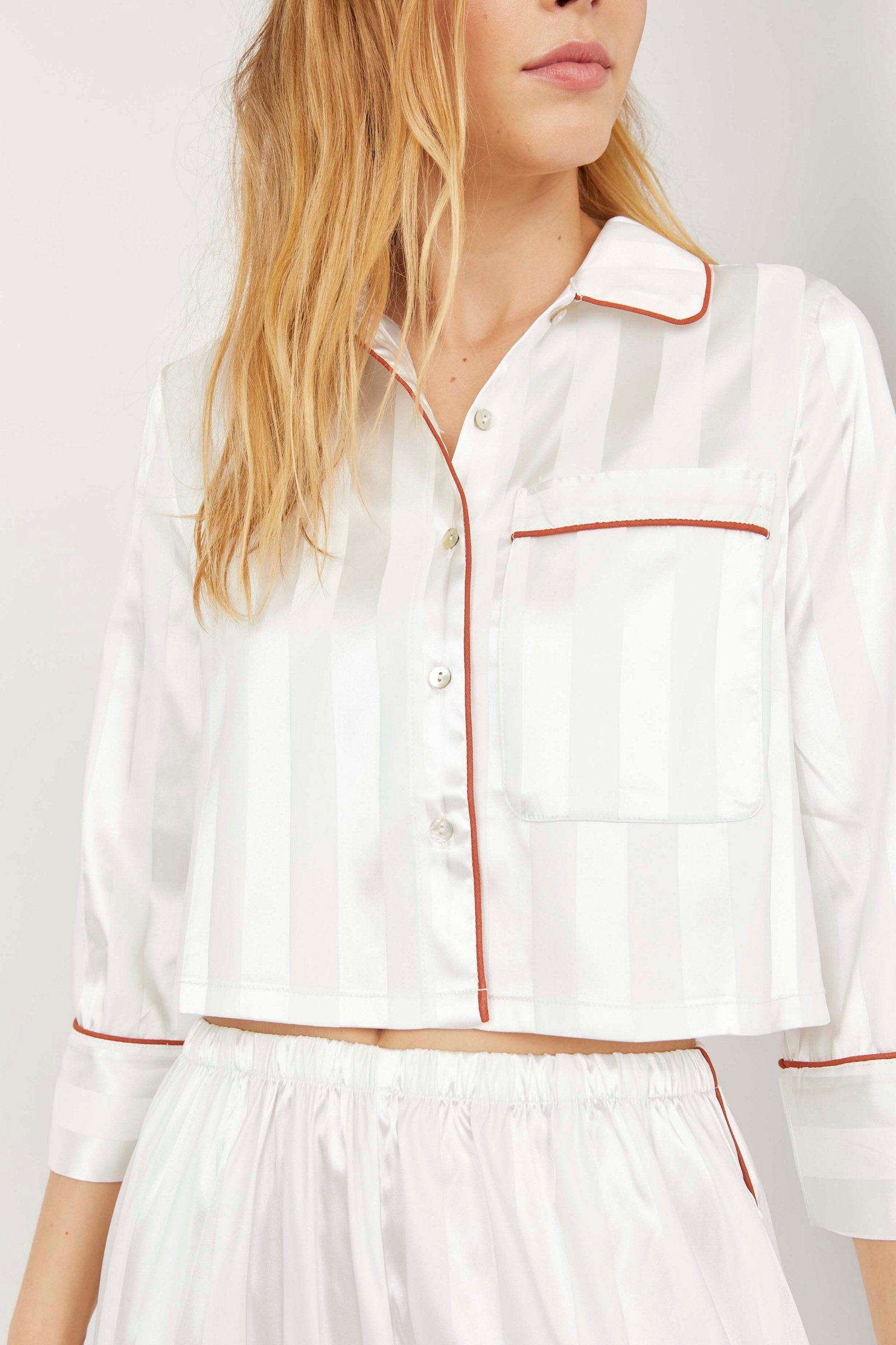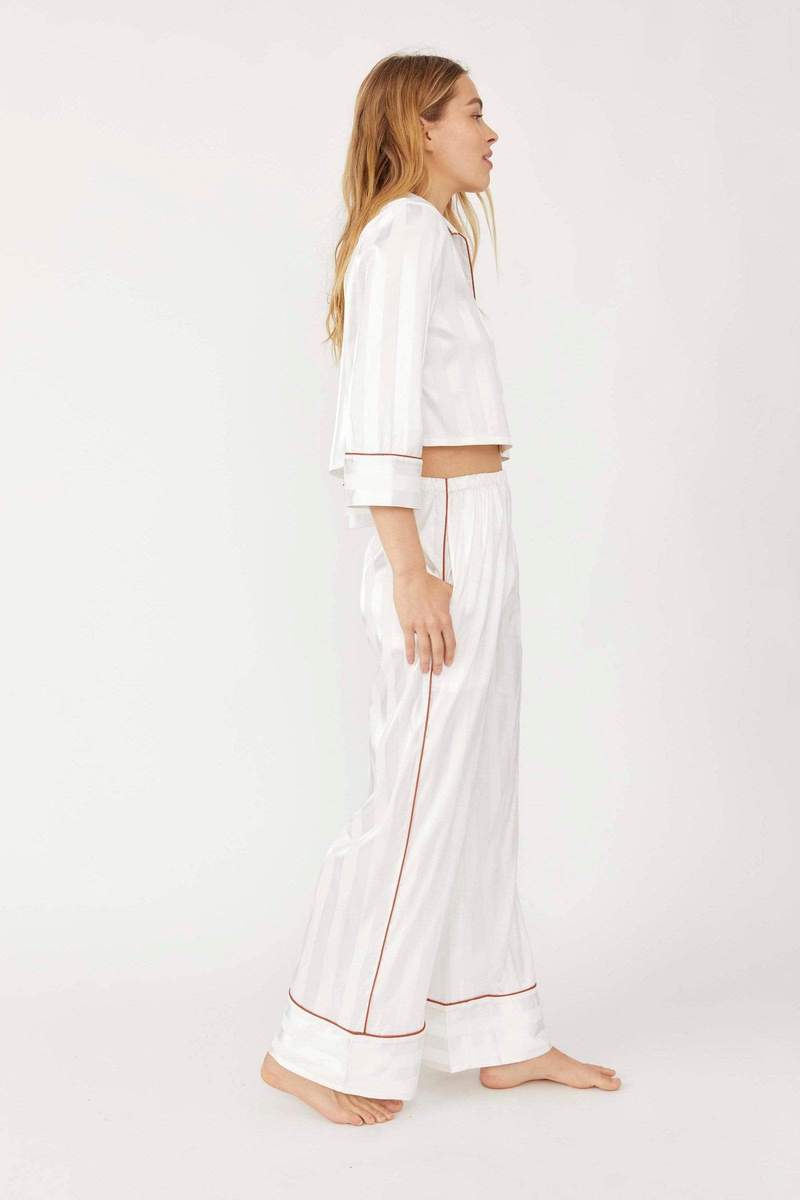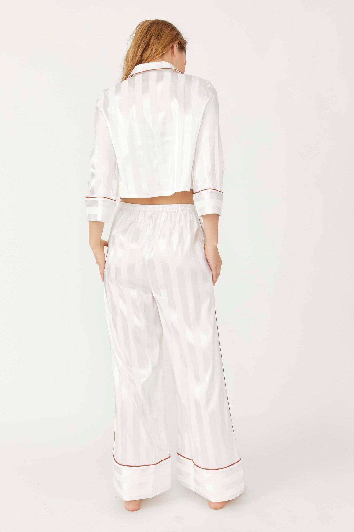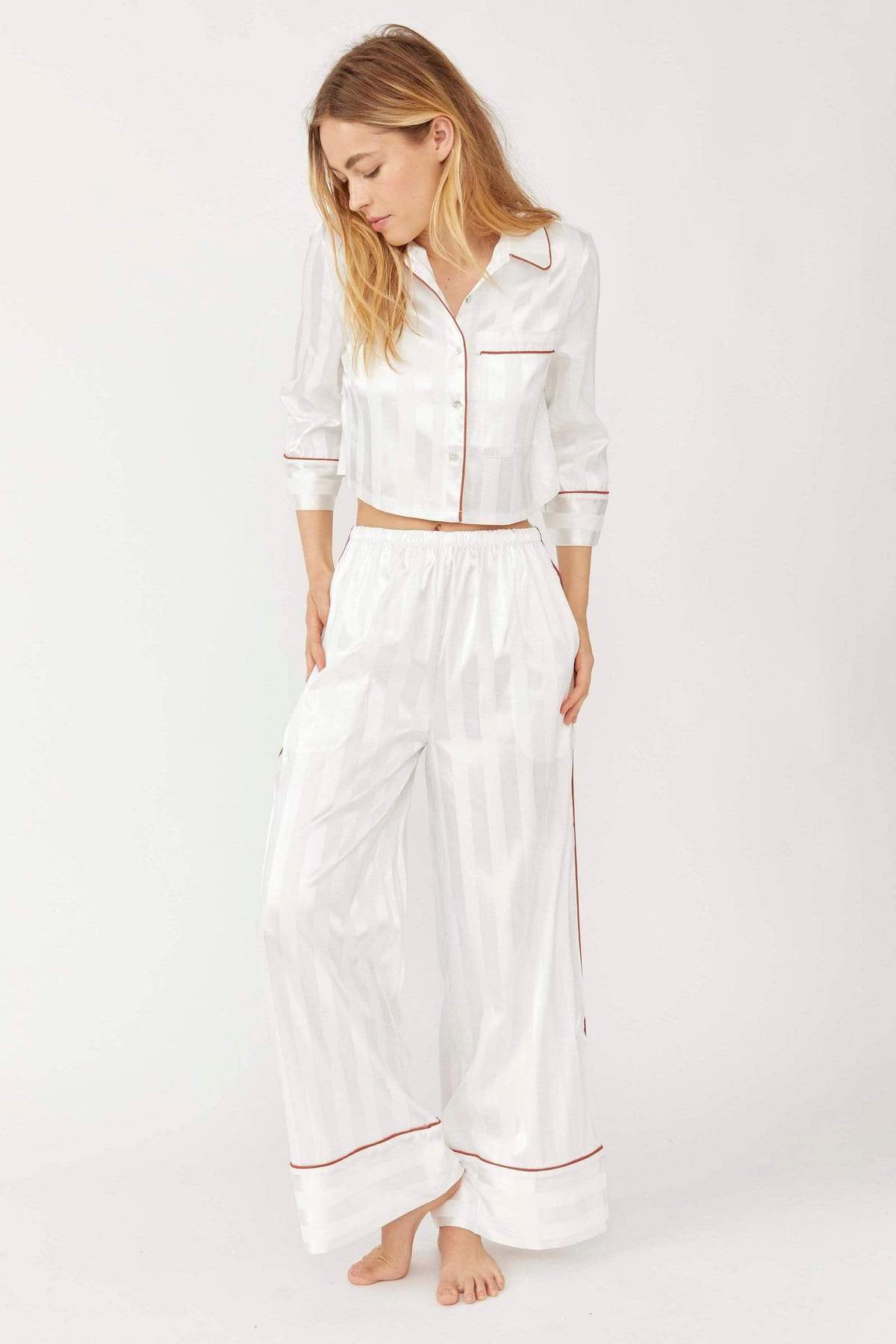 Drift off to dreamland in the Pajama Party Sleep Set! Soft cotton-blend stretch knit shapes this cute pajama set that has a collared long sleeve top with a wide-cut bodice, button placket, and front patch pocket. The matching pants have an elastic waistband and a flowy fit. Contrasting navy whipstitch trims the collar, button placket, cuff sleeves and hem to add a darling finish.