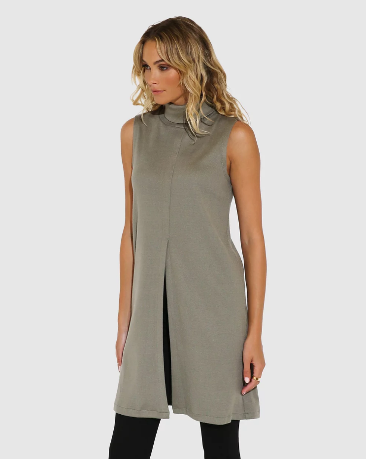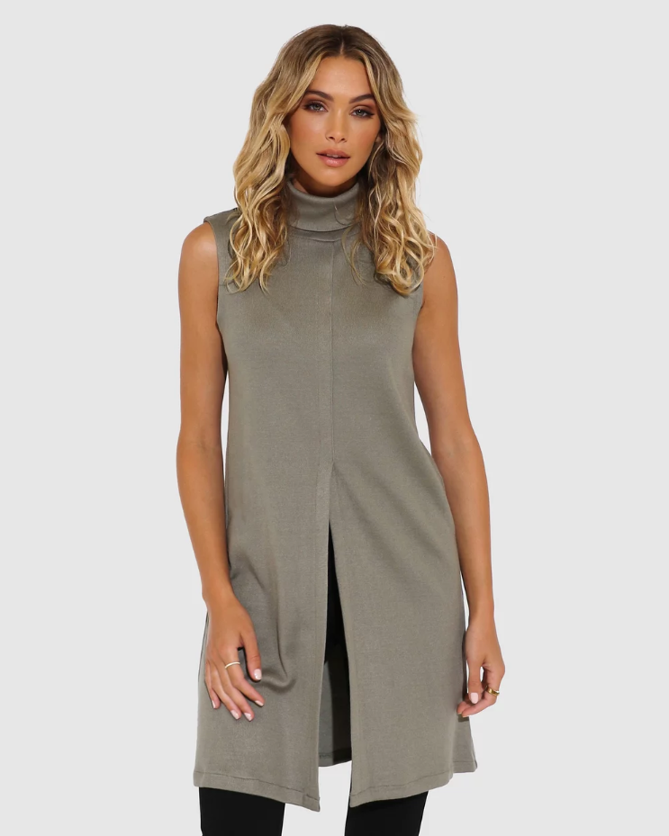 The ever-so-chic Tribeca Top by Madison The Label is your perfect trans-seasonal staple. This sleeveless style features a high roll neckline, split detail and is made from a midweight knit fabrication.