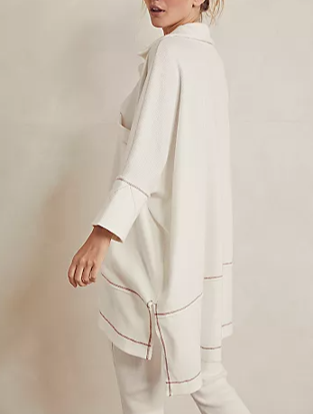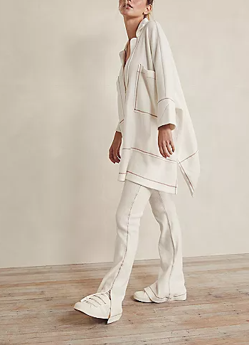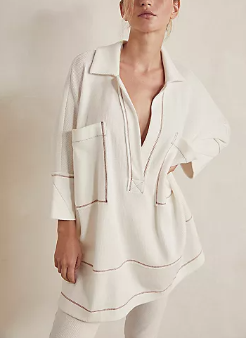 The definition of cozy-chic, this oversized pullover is featured in a drapey silhouette with exaggerated V-neckline and large pouch pockets at the front for added dimension.