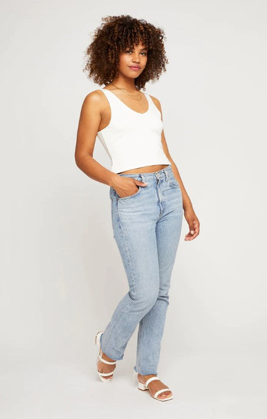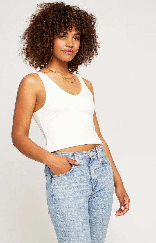 The Verge tank is made of super soft rayon jersey and is fully lined for ease of wear. The flattering front and back v-neckline can be easily dressed up or down.